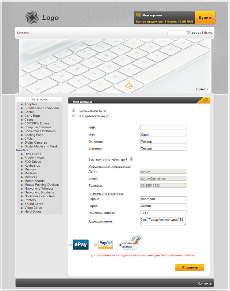 - Возможность оплаты с помощью EPay, PayPal, наложенным платежом или банковским переводом.
